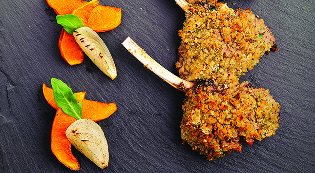 قطع‭ ‬لحم‭ ‬الحمل‭ ‬بقشرة‭ ‬من‭ ‬إكليل‭ ‬الجبل‭ ‬والخردل