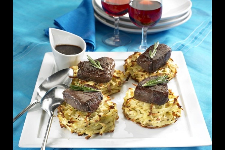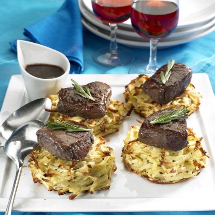 6 طريقة التقديم: يوضع مزيج البطاط المخبوز في قعر طبق التقديم، تعلوه قطعة من اللحم، ويزيّن باكليل الجبل.وتوضع الصلصة الناتجة عن طهو اللحم، في وعاء صغير منفصل.يقدّم على الفور.