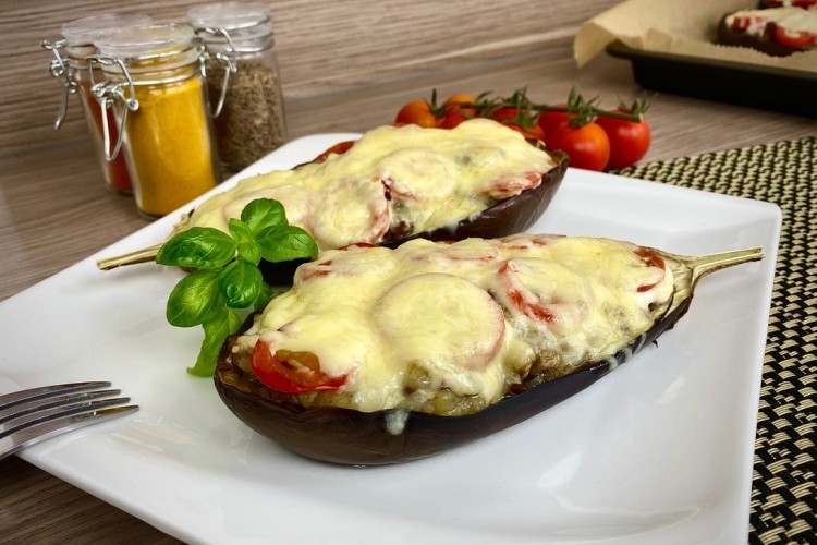 - يدخل الباذنجان الفرن المحمى مسبقاً ويطهى لمدة 20 دقيقة.