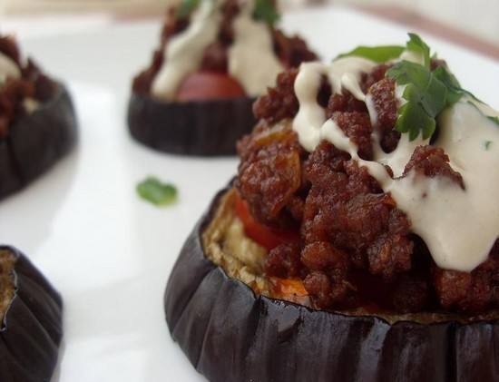 - حشي قوارب الباذنجان بالحشوة و رصيها فوق الصلصه