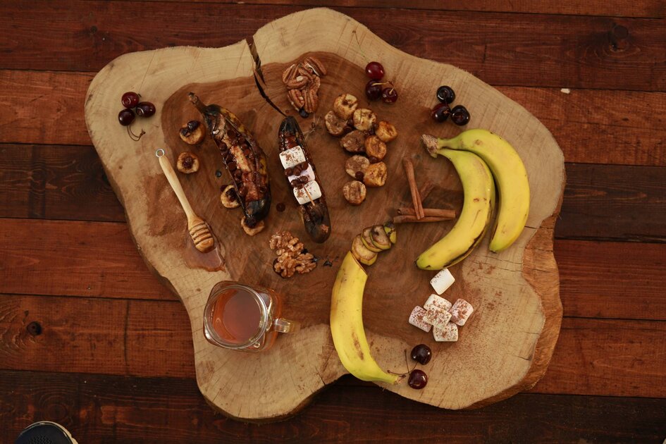 ويتم تقشير هذه القطعة من الموز دون فصل القشر
