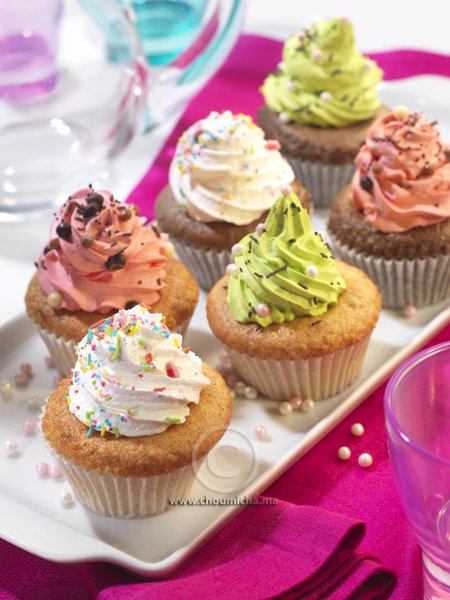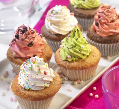- قبل تقديم الكاب كيك تزين بكريمة الشانتيي والسكاكر الملونة.