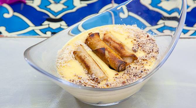 يسخن الزيت ( يجب أن تكون الحرارة متوسطة ) وتقلى اللفائف عبرتقليبها (يجب الحذر لأنها تقلى بسرعة).