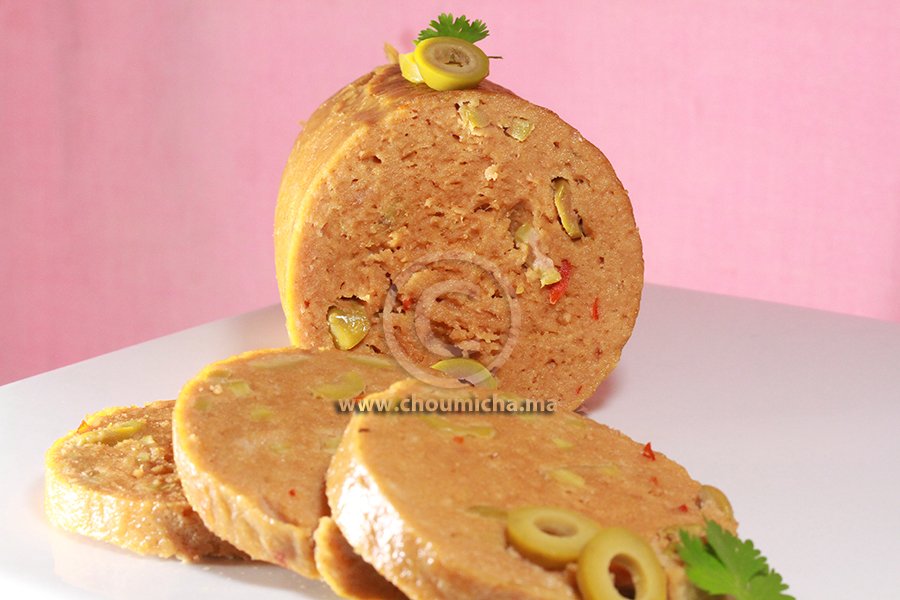 - في خلاط كهربائي، يخلط اللحم المفروم مع باقي المكونات، ما عدا الزيتون، للحصول على خليط لين ومتجانس.