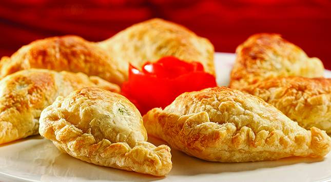 تدهن حواف المربعات بالماء، ويوضع مقدار 1 ملعقة كبيرة تقريبًا من خليط السبانخ في منتصف كل مربع، ثم يطوى العجين على الحشو على شكل مثلثات ويضغط على الحواف لإحكام إغلاقها.