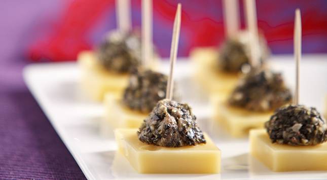 - 400 جم من جبن جارلسبرج (أو جبن الشيدر) المقطع إلى مكعبات كوكتيل