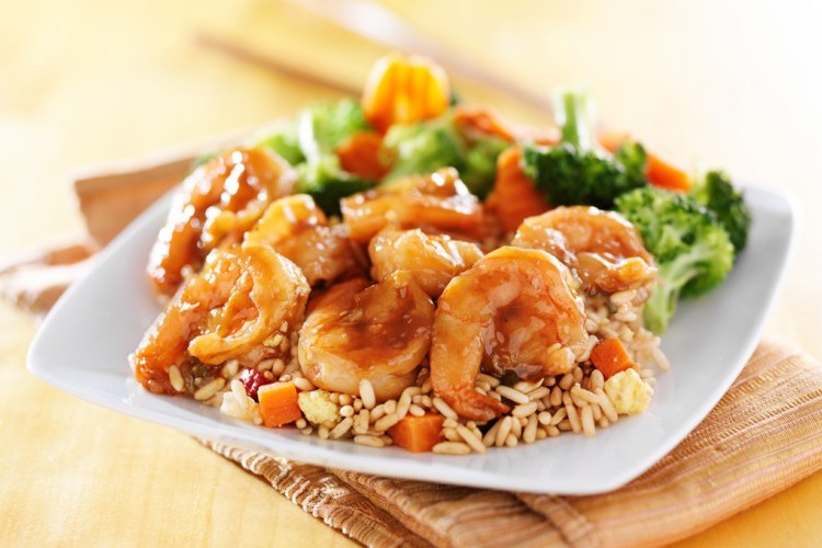 - اسكبي الصلصة فوق الروبيان والخضار.