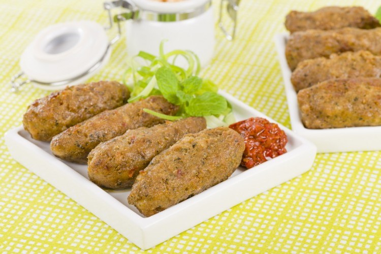 - في وعاء ضعي كلاً من: صدر الدجاج، واللية، والبقدونس، والملح، والفلفل الأسود، والبابريكا، والكركم، والدقيق، والبقسماط.