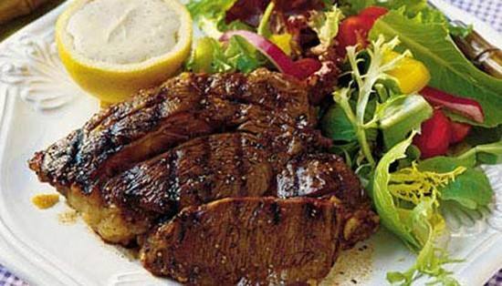 - ويقدم اللحم المشوي مع البطاطس المحمر والسلطة الخضراء، لتصبح وجبه متكاملة غذائياً .