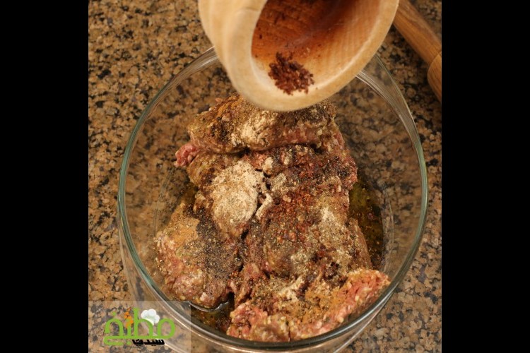 تتبل الكفتة بالبهار المشكل، والثوم البودرة، والبصل البودرة، وزيت الزيتون، وجوزة الطيب، والملح، والفلفل الأسود، وتخلط