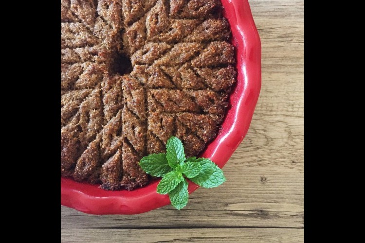 6. بللي اليدين بالماء، ويمسح سطح الكبة جيداً، وتوضع السمنة فوق الكبة وتقسم بسكين حادة إلى مربعات أو أي شكل ترغبين.