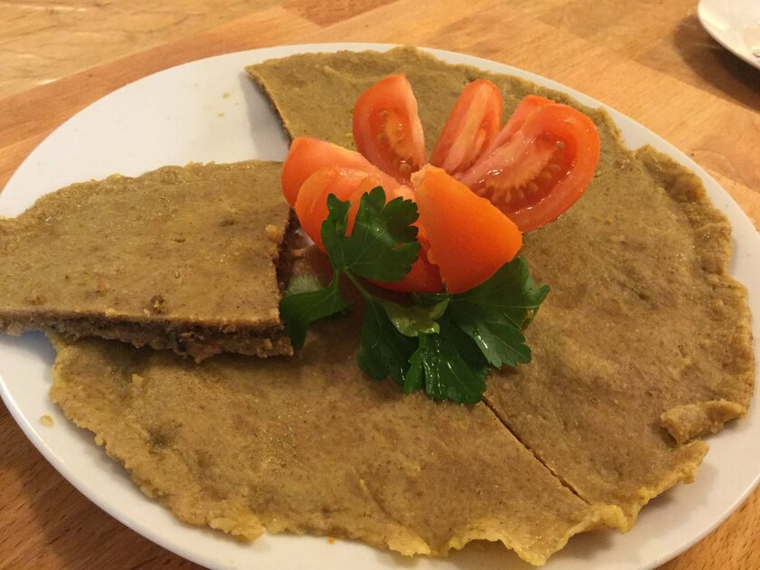 - توضع العجينة في صينية مدهونة بالزيت ثم تدخل الفرن حتى تستوي.