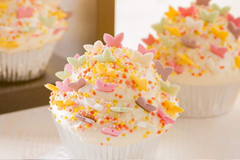 كب كيك الشوكولاتة البيضاء مع فروستنج جبن الكريمة