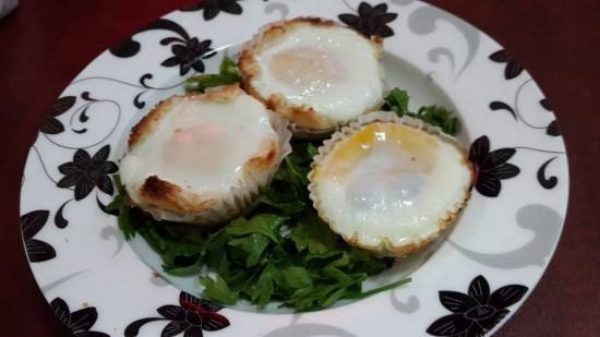 - ندخله الفرن على درجة حرارة 200 حتى يستوى البيض ويجمد .