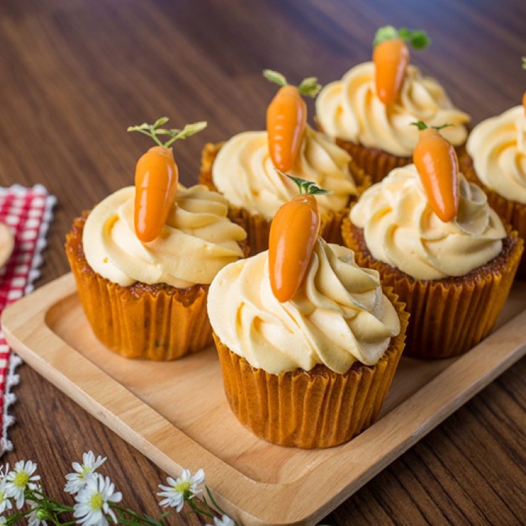 8. بواسطة كيس الكريمة غطي الكب كيك بالجبن الكريمي على شكل وردات أو حسب الرغبة.