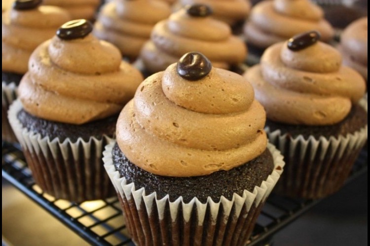 7. لعمل الكريمة تخفق الزبدة باستخدام الخفاقة الكهربائية حتى تصبح كريمية ثم يوضع السكر بالتدريج مع استمرار الخفق ثم تضاف كريمة الخفق والقهوة مع استمرار الخفق بسرعة عالية حتى تصبح كريمية. ثم يزين الكب كيك بالكريمة ويقدم.