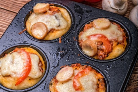 - حيث سنقوم بضغطها قليلاً داخل القالب كي تأخذ شكله، ثم سنقوم بدهن سطحها بالصلصة وفوق الصلصة مباشرة القليل من شرائح الفطر و الفلفل الأحمر ونقوم بتكليلها أخيراً بالقليل من جبنة موزاريلا المبشورة.