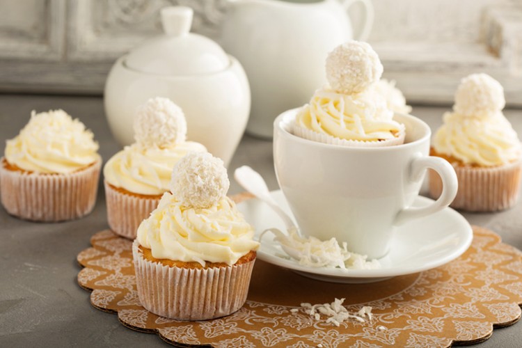 كب كيك جوز الهند بالكريمة