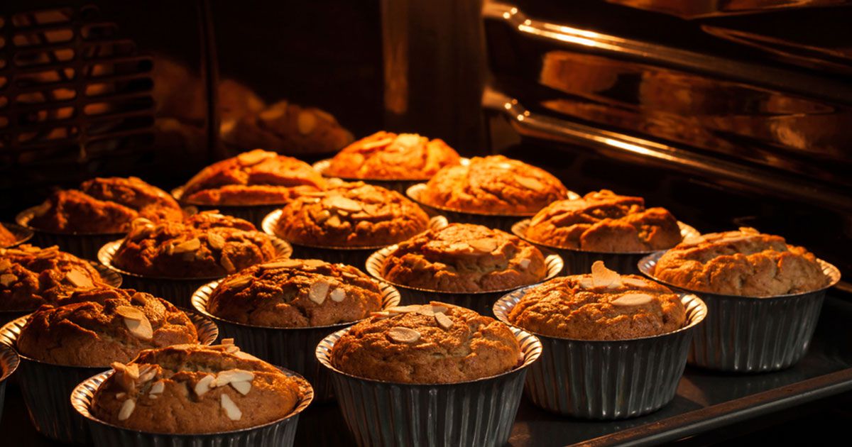 4- أسكبي مزيج الكب كيك في القوالب وزيني وجهها بالشوفان ثم أدخليها إلى فرن محمى مسبقاً على حرارة 180 درجة مئوية لحوالى 15 دقيقة وانتبهي لهذه الخطوات حتى تحصلي على كب كيك مثالي.