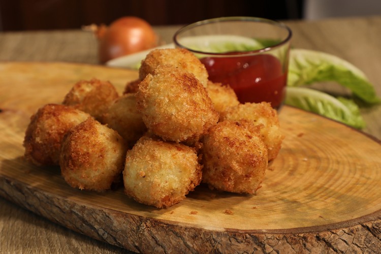 - سخني زيت غزير في مقلاة غير لاصقة على النار، واقلي كرات البطاطس حتى تتحمر من جميع الجهات.