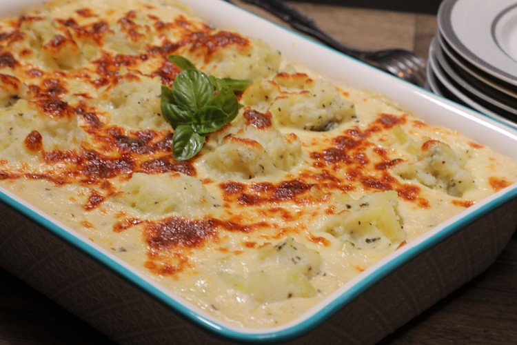- لتحضير البطاطس: اهرسي البطاطس المسلوقة مع الزبدة والأعشاب الإيطالية، أضيفي كريمة الطبخ، وحركي.