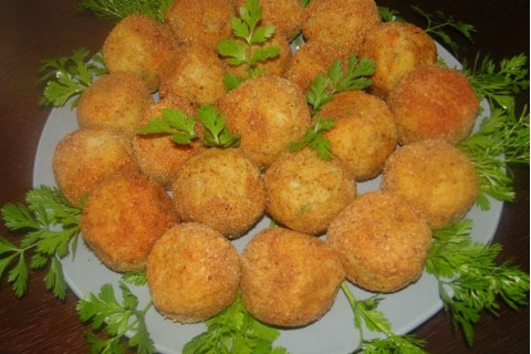 - بعد ذلك نشكل كريات ونضع الحشوة داخلها ثم نغمسها في الدقيق بعدها بالبيض ثم في البقسماط.