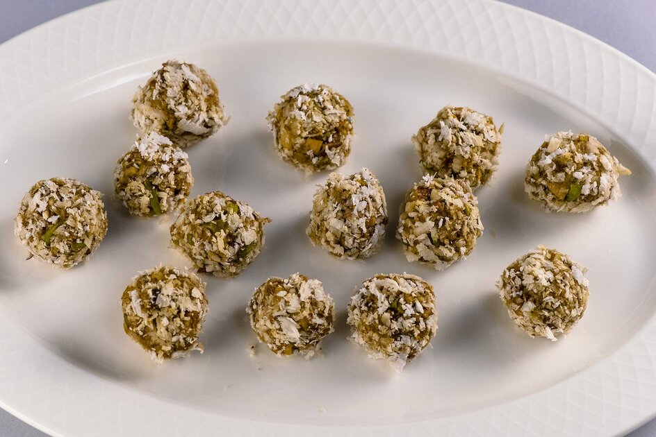 تغلف الكرات بجوز الهند المبشور وتوضع في البراد لنصف ساعة لتتماسك. يمكن أن تحفظ الكرات في علبة محكمة لـ2 أسبوع.