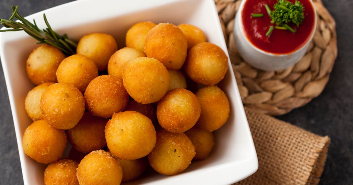 8-صفّي كرات البطاطس من الزيت وضعيها على محارم ورقية في طبق. قّميها ساخنة. ألف صحة!