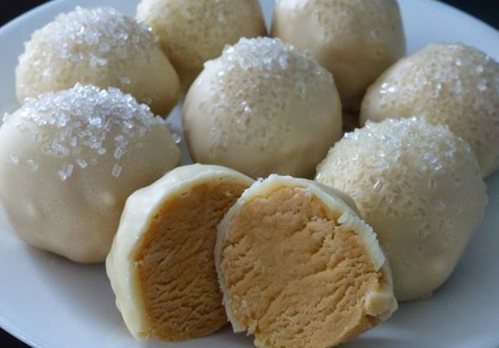 اكتشفي طريقة تحضير أطيب كرات زبدة الفول السوداني بتغليفة الشوكولاتة البيضاء.. من الحلويات الغربية السهلة والشهية جداً.. نقدمها لك من مطبخ اكلات