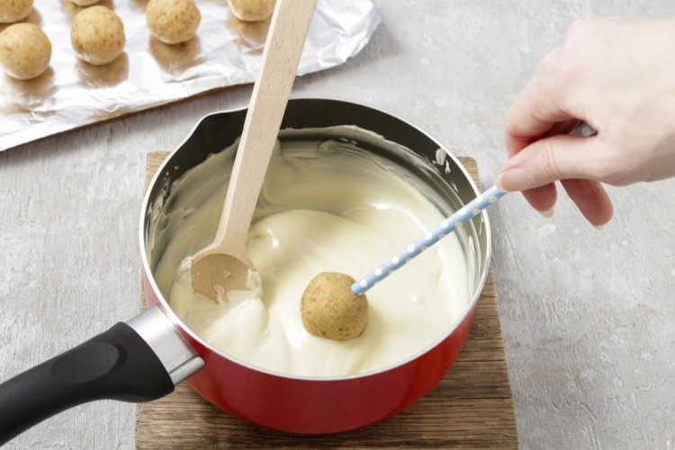 كرات كيك الفانيلا بالشوكولاتة البيضاء بالصور والخطوات
