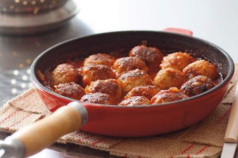 - يسخن زيت في الطاسة و تقلي فيه كرات اللحم حوالي ١٠ دقائق مع التقليب.