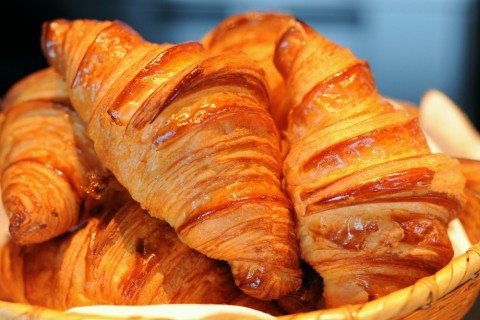 - ثم ترق العجينة وتوضع الزبدة في وسط العجينة وترق 3 مرات ثم ندخلها الثلاجة.