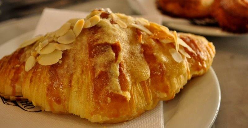 - إخفقي البيض مع ملعقتان كبيرتان من الحليب ثمّ إدهني بها وجه الكرواسون وإنثري اللوز المقطّع على وجهها.