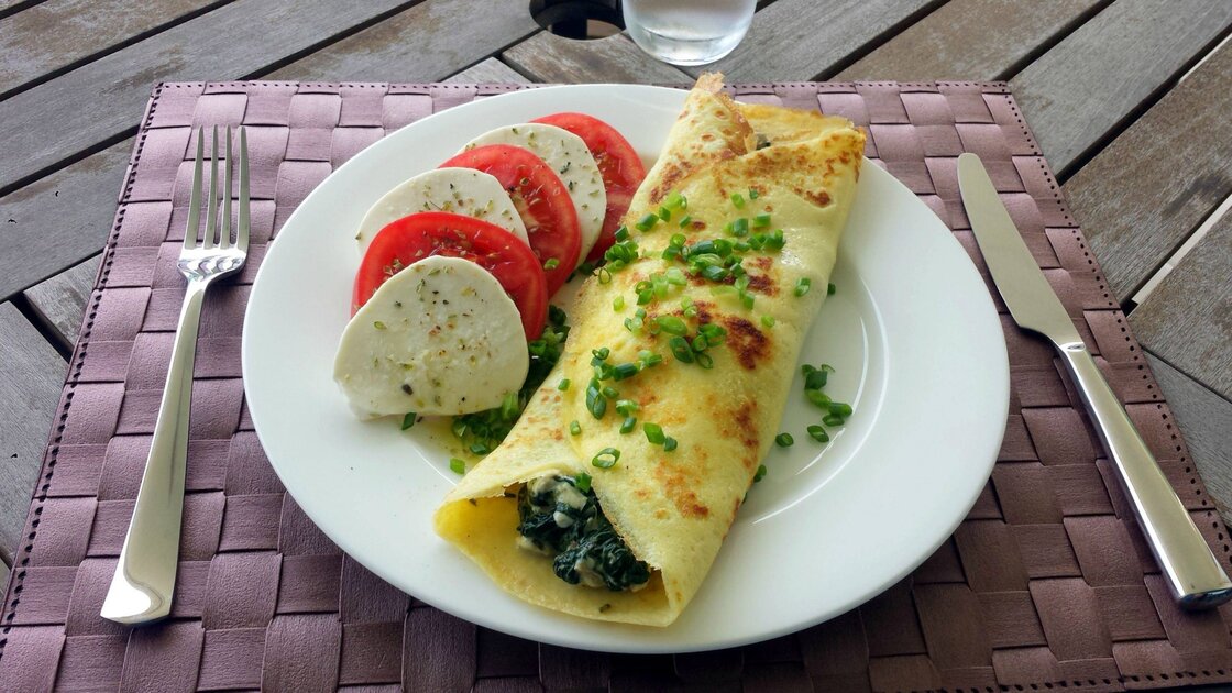 - نوزع الكريب في صينية الفرن و نسكب ملعقة حشوة ثم نطويها و نطهو في الفرن مدّة 12 دقيقة و نقدّمها فوراً.