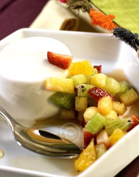 - تقدم الكريمة مع سلطة الفواكه الباردة.