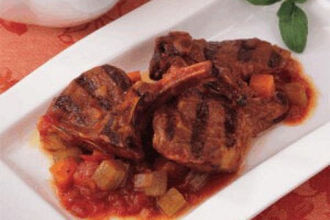 1. تشوى كستلاتة الغنم من الجهتين وتوضع جانبًا على طبق.