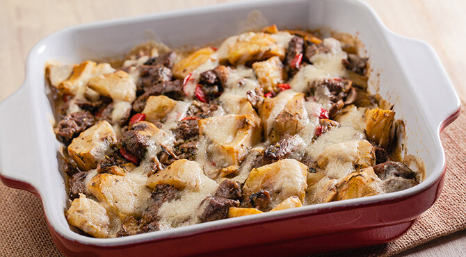 تخبز في الفرن مدة 10 دقائق حتى تغلي وتصبح ذهبية اللون.
