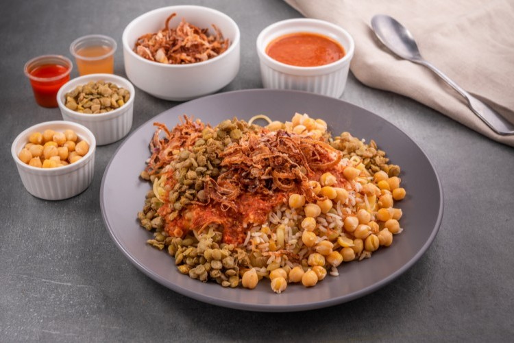 - قومي بغرف الكشري في الطبق بطريقة متساوية.