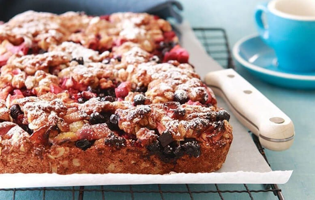 اكتشفوا وصفة الكيك اللذيذة بالتفاح والتوت التي تعتمد على الدقيق الكامل والشوفان، والمثالية للرغبة في تناول شيء حلو محتوي على الألياف الودودة للبطن.