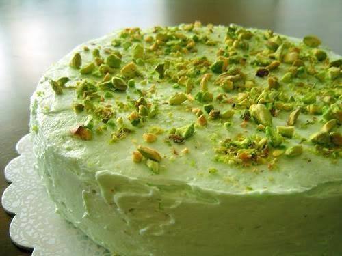- اضيفي الكريما و حوالي 5 قطرات من ملون الطعام الأخضر و اخفقي الجميع سويا، وزعي الخليط على الكعكة المبردة.