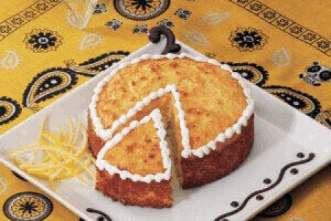 3. يوضع الخليط في قالب خبز مستدير 20 سم وتُخبز الكعكة في فرن محمّى على حرارة 175 درجة مئويّة لمدّة 45 دقيقة أو حتّى تنضج.