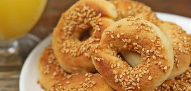 - يُوزع السمسم على الكعك، ثم تُصفّ الكعكات في صينيّة التحمير وتوضع الصينيّة بفرن مسخّن مسبقاً وتترك على حرارة مئة وثمانين درجة مئوية حتى يصبح لون الكعك ذهبياً.
