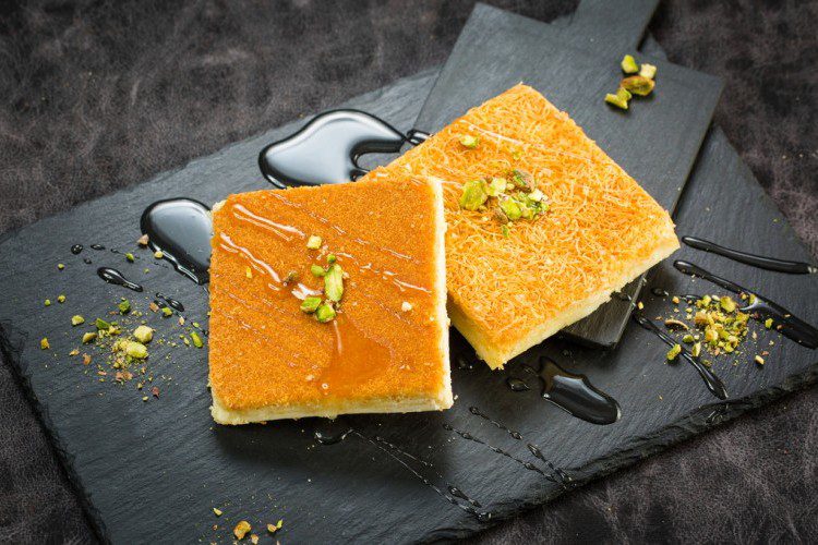 - أخرجيها من الفرن، وضيفي إليها القطر البارد تماماً، ثم زينيها بالفستق الحلبي، وقدميها.