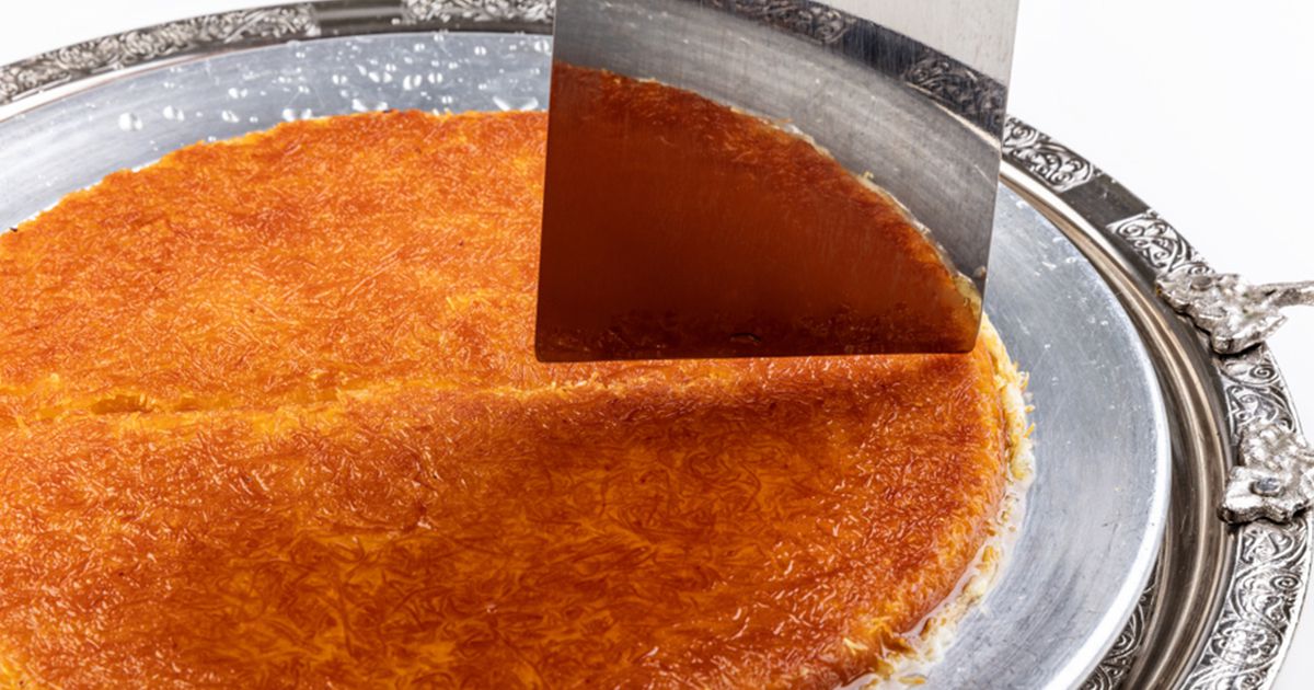 1- إدهني صينية فرن بالصبغة البرتقالية وملعقتين كبيرتين من السمن. 2- رصّي عجينة الكنافة في الصينية. 3- أسكبي السمن فوق العجينة. 4 أدخلي الصينية إلى الفرن المحمّى مسبقاً على خحرارة 150 درجة مئوية لـ20 دقيقة. 5- في قدر، أخلطي الحليب، نشاء الذرة والسكر. ضعي القدر على نار متوسطة وحرّكي المزيج حتى يكثف. أطفئي النار. 6- أخرجي الصينية من الفرن. أسكبي خليط القشطة فوق العجينة وافرديها بواسطة سباتولا. 7- أقلبي الكنافة في طبق التقديم وقدّميها إلى جانب القطر. ألف صحة!