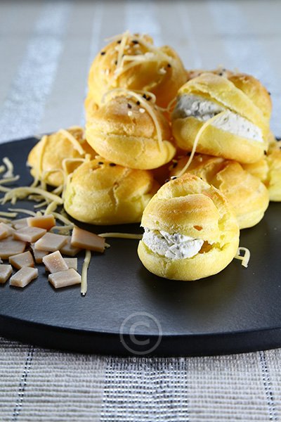 • يغلى الماء والزبدة في كسرولة. يضاف إليهما الدقيق، السكر الناعم والملح مع التحريك المستمر حتى الحصول على كرة من العجين. توضع الكسرولة فوق نار هادئة لتجفيف العجين مع التحريك المستمر حتى تتكون قشرة رقيقة على جوانب الكسرولة (لمدة دقيقة تقريبا).