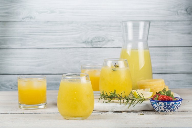 2. يُضاف الثلج وعصير الليمون الحامض وعصير الأناناس في وعاء الخلَّاط الكهربائي، وتُخفق المكوِّنات على سرعة مُتوسِّطة. ويُقدَّم الكوكتيل باردًا.