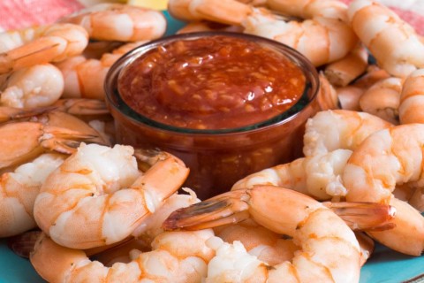 - ثم نرص وحدات الجمبرى فى طبق التقديم وتقدم مع مزيد من الصوص بالهنا والشفا.