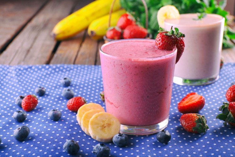 1. ضعي اللبن الزبادي والموز وعصير البرتقال والفراولة والتفاح في الخلاط الكهربائي لمدة 20 ثانية حتى تمتزج المكونات ويصبح الخليط ناعماً.