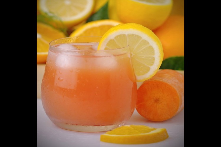1 يعصر البرتقال والليمون معاً، ويوضع جانباً.