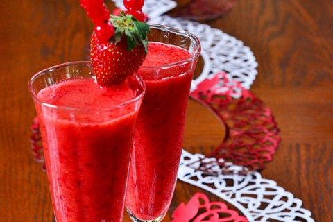 1. في ابريق الخلاط ضعي الكرز، التوت، الرايزبيري، البلوبيري، الكرينبيري، العسل، الصودا والثلج.